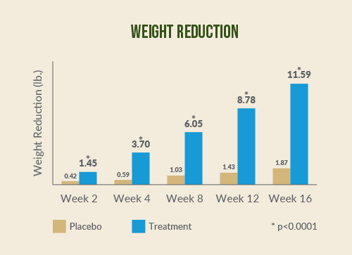 significant reductions in body weight (-11.82 pounds vs. -1.92 pounds; p